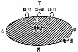 小题1:根据②日落时的北京时间为20:00,计算该地比北京时间晚2个小时,则①地日落的地方时为16:30,则①地的白昼时间=(16:30-12)×2=9小时。所以本题选择A选项。
