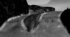 【小题1】图示反映内江位于凹岸,水流较急,而外江位于河流凸岸,水流较缓。