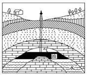 (2)利用背斜找油:背斜是良好的储油构造。由于气最轻,分布于背斜顶部,水的密度大,分布由于底部,中间为石油。