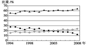 5、单选题 该图为“江苏某市1994~2008年三次产业比重变化示意图”。读图完成问题