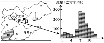 ⑴ 简述图示河流最小流量出现的时间及其原因。(4分)