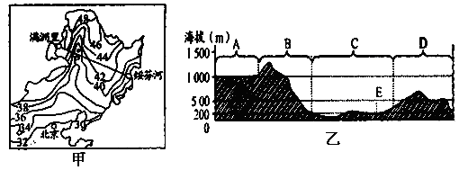 1、综合题 图为我国东北地区等气温年较差(年较差指最高月平均气温与最低月平均气温