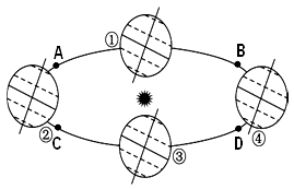 A.30小时 B.15小时 C.2小时 D.1小时 参考答案: 本题解析: 本题难度:一般 3、单选题 该图为“地球公转位置二分二至示意图”,读图回答下列要求。(8分) 参考答案: 本题解析: 本题难度:一般 4、单选题 该图的阴影表示黑夜。回答问题。 |
