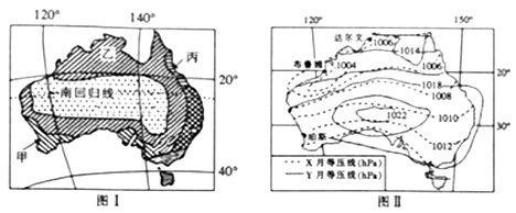 2、综合题 (14分)读澳大利亚气候分布图(图Ⅰ)和等压线图(图Ⅱ),回答下列问题。