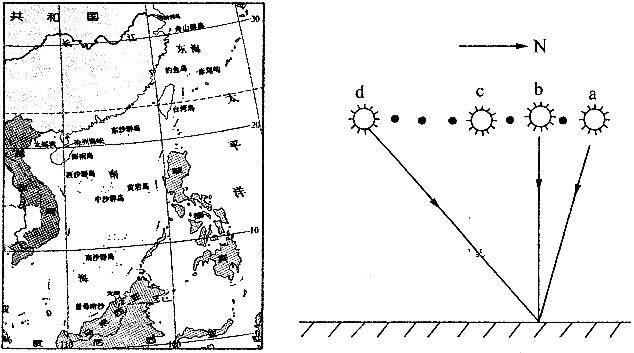 (3)30°N纬度的白昼长为?小时;M地太阳在观察者的?方向升起。