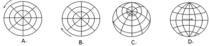 小题2:在乙飞机上空俯视地球绘制的地球运动的投影图正确的是