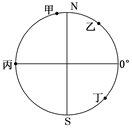 5、单选题 2011年3月,有甲、乙、丙、丁四架飞机以同样的速度沿所在纬线自西向东飞行(如图)。据此回答问题。