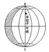 A.日界线,本初子午线 B.60°W,180° C.0°,150°W D.150°W,180° 5、综合题 (10分)某校(北回归线以北)地理课外小组,做了如下实践活动。如图所示,在该校操场上树立一垂直于地面的旗杆,杆高为h,0P为正午旗杆的影子,OM垂直于OP,测得OP长度为一年中最长,且为h×cot36°34′,(tg35°≈0.7? tg45°=1? tg60°≈1.732)。 |