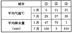 参考答案:D 本题解析:随图中锋面气旋的发展和移动,P地风向、风速、气压均在发生变化。图中低压中心向东北方向移到,中心气压降低,势力变强。图中冷锋与暖锋之间夹角变小,说明冷锋移动速度快于暖锋。根据等压线图上画风的方法可判断,P地6时、18时风向均为偏西北风;Q地风向由偏南风转为偏西风。故D正确。 本题难度:一般 3、单选题 下表是三个城市的气候资料,据此回答问题。 参考答案:B 本题解析:本题考查世界气候。结合三个城市的气温和降水量资料判断,①地最低月温在0°C以上,降水集中于夏季,判断为亚热带季风气候;②地雨热不同期,故判断受地中海气候影响;③地终年高温,降水集中于夏季,故判断为热带季风气候,故B项符合。 本题难度:一般 4、单选题 下图为世界某区域图及甲城市的气候资料。据此完成下题。 |