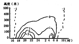 2、单选题 读南京北城郊秋季某日垂直温度梯度(0°C/100米)时空变化图。完成下列(1)——(3)题。