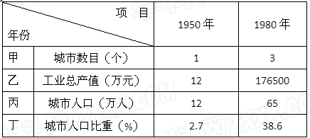 5、单选题 读某地区发展变化数据表,表格中不能直接反映城市化进程的数据是