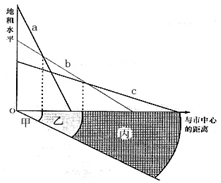 1.此图反映的影响地租高低的因素是2.图中丙区域为工业部门所租用,这是因为3.如果仅考虑图示因素,城市地域结构应该是