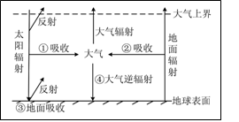 2、单选题  依据地球大气受热过程示意图,分析大气中