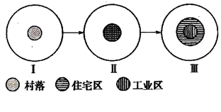3.图示反映由乡村逐渐发展为城市,城市中心区不断扩大的过程即城市化过程,图示工业区的发展,反映乡村人口转化为城市人口,则城市人口比重不断上升,说明城市化水平不断提高。