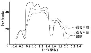 在遥感彩色红外线图片上能把健康和受病害松树区分开来,其原理是