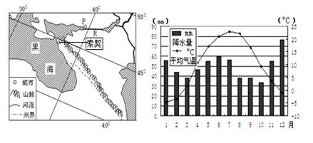 3、单选题 左图为“世界某区域示意图”,右图为该区域P城市的气候统计图。读图回答以下问题。