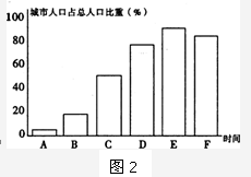 1.图中字母A—E反映的现象是2.在城市化过程中