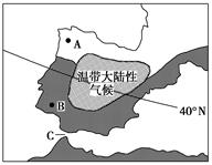 本题解析:A地位于40°N以北的大西洋沿岸,为温带海洋性气候,终年温和多雨,因常年受西风和北大西洋暖流影响形成。B地位于地中海沿岸,为地中海气候,夏季受副高控制,高温少雨,冬季受西风控制,温和多雨。