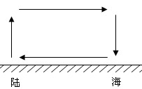 【小题5】夏季陆地上为低压,海洋上为高压,季风环流可以画出