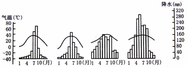 【小题3】根据图示四地的气温、降水特征判断,①地7、8月时降水丰富,判断位于我国华北地区。