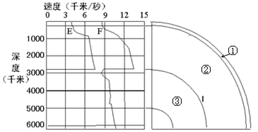 4、综合题 读“地震波速度与地球内部构造图”回答下列问题。