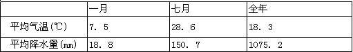 (2)读图和表,图中所示A及附近地区发展农业的优势自然条件有哪些?(4分)