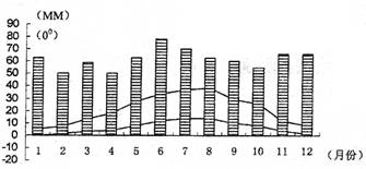 4、单选题 下图表示某地年降水量和年最低气温、最高气温数据,根据资料回答问题。