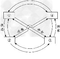 4、单选题 下图是地球圈层间的物质交换示意图。读图,回答下题。