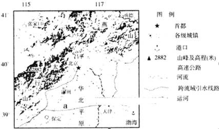 (1)从地形条件来看,a引水线路位于华北平原,地势西高东低,有利于自流引水;从地质条件来看,华北平原多沉积土壤,土质松软,有利于工程的修建。