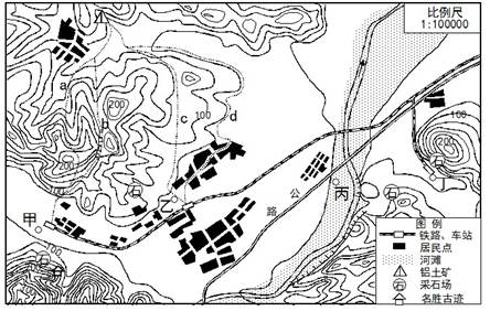 小题1:为把铝土矿石运到火车站,计划修一条公路,合理的选线是a、b、c、d中的