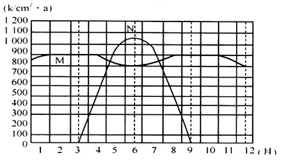 5、单选题 下图为“M、N两地太阳辐射的年变化示意图”。读图回答1—3题。