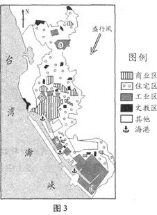 小题2:高雄的石化工业最适宜布局在图3中的