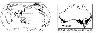 (2) 图示的农业地域类型主要分布于澳大利亚东南部的 ? (地形区),限制其发展的主要自然因素是 (2分)。