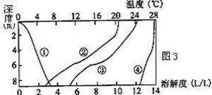 (1)有关图中湖泊水深、溶解氧、水温三者之间的关系,下列表述正确的是 A.水温随水深的增加而升高? B.溶解氧随水深的增加而逐渐增大 C.水温、溶解氧都随水深变化而增大? D.溶解氧随水温的升高而增大 (2)下列对湖泊湿地的开发利用,正确的是 A.围湖造田,增加土地的后备资源? B.退耕还湖,提高湖泊的蓄洪能力 C.建立自然保护区,维持生物的多样性? D.发展水产养殖、观光旅游