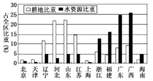 3、单选题 我国水土资源配合不佳,也是导致农业缺水的重要原因。读中国东部沿海12个省(市、区)耕地、水资源的比重图,完成1—2题。