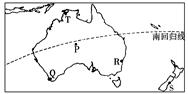 小题2:根据气候特征“冬季温和多雨、夏季炎热干燥”可判断该种气候类型为地中海式气候,根据世界气候类型分别图可以知道在澳大利亚的西南部就是地中海气候,即Q点附近是地中海气候,正确答案选B。