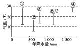 小题3:从图2中可以得出P地是典型的热带沙漠气候,其气候特征为:终年炎热干燥,又从图3中可以得出①地终年炎热干燥,年降水在500mm以下,故①符合这个条件,正确答案选A。
