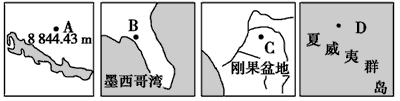 (1)为探测莫霍界面的情况,在下列四地同时进行了地震波的测定,最迟从莫霍界面传来地震波的是? (? )
