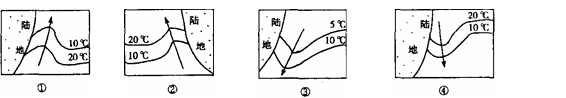 5、单选题 下列的四幅图中.正确表示北半球寒流的是(?)