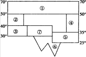 3、综合题 ? 某位同学对照世界陆地自然带分布图画出了亚洲自然带分布的理想模式图(见下图),以便更好地记忆。读图,完成下列问题。