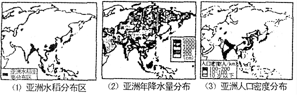 (2)读图(2)、图(3),上述地区发展水稻生产的优势条件有:(要求具体回答)