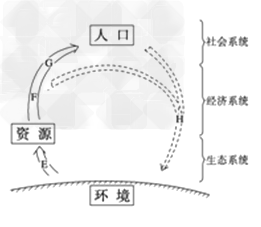 2、单选题 读“环境、资源和人口关系示意图”,回答1~2题