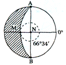 5、单选题 下图中阴影部分为黑夜,中心点为北极点,则下列叙述正确的是 ( )