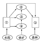 本题解析:本题考查区域的资源开发和可持续发展。(1)开发利用水能资源,需要建水电站。发展机械工业主要需要钢铁工业的原料,且铁矿开采工业,可为钢铁工业提供原料,故③表示钢铁工业;森林资源开发,主要发展⑤森林工业或木材加工工业等。(2)图示钢铁工业的相关产业多,工序复杂,故形成该地区的主导工业。以钢铁工业为中心发展的工业地域一般占地面积大,发育程度高,可能形成工业城市。(3)焦化厂和烧结厂为钢铁工业提供原料。(4)工业集聚可共同利用当地的基础设施和廉价劳动力等。(5)具有工业联系的工厂,布局上往往集中在一起,即形成工业集聚,工业集聚而形成工业地域,工业集聚的优点主要从运费、生产联系和信息交流、共用基础设施等方面分析。