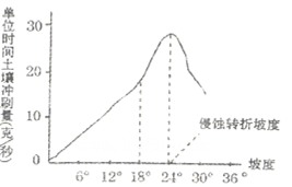 材料二 有人在裸露的红粘土上进行人工降雨试验,不同坡度与土壤冲刷量关系结果如图所示。