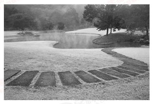 5、单选题 下图拍摄于12月14日的杭州太子湾公园,草坪上铺满了霜,湖面上冒着水汽。对该现象的解读,下列叙述正确的是