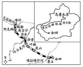 5、单选题 2010年12月30日,连接南疆8个县市的喀和铁路(如下图所示)建成通车。读图判断下列关于喀和铁路建设的叙述,正确的是( )