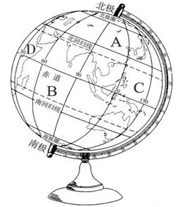 (1)下图所示地球仪上A、B、C、D所在的大洲或大洋分别是(? )