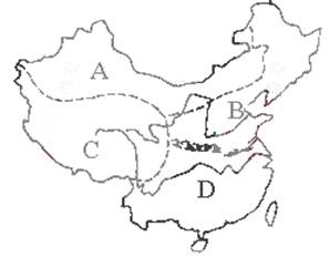 ③依据水文、植被差异划分?④有明确的区域界线2.各区域内部和区域之间,分别具有的特征是3.与D区域相比,C区域的特点是