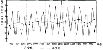 2、综合题 下图示意 1992 年 10 月一 2007 年 5 月我国某海域海平面的月变化和年变化,回答下列 问题。